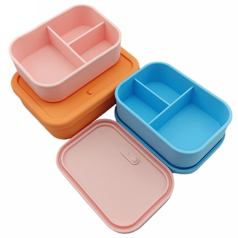 Силиконовая герметичная коробка для ланча и хранения свежих продуктов, трехсекционная коробка для детского питания пищевого качества