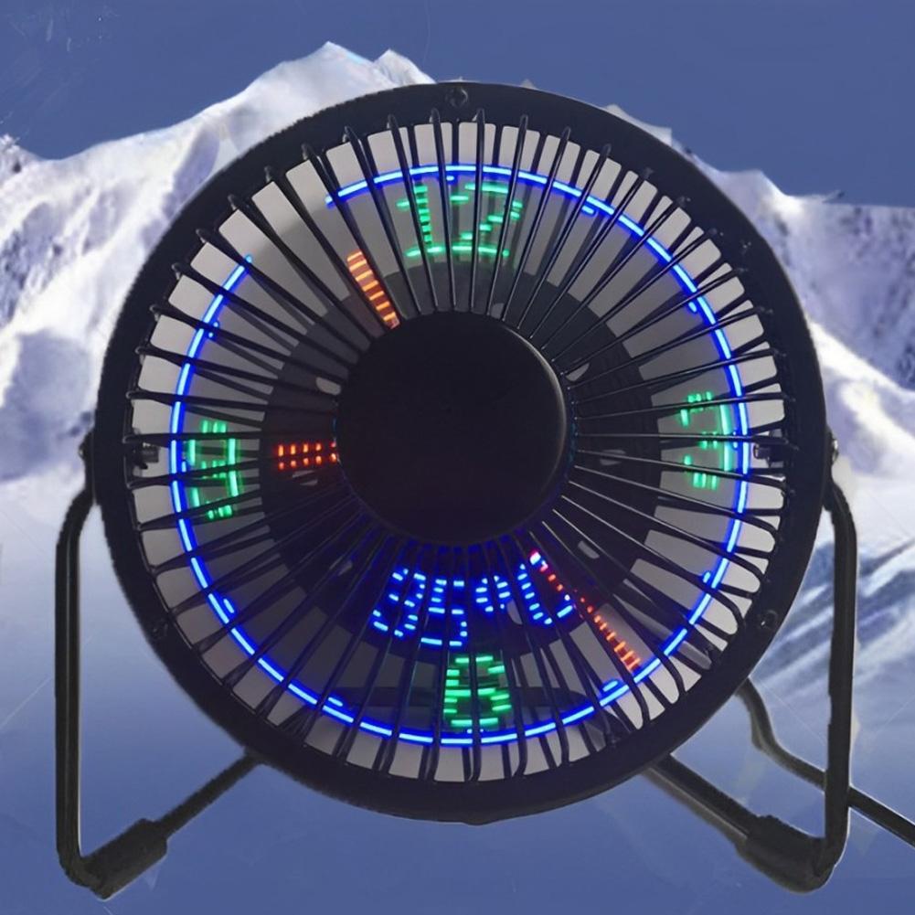 Светодиодный USB-вентилятор с часами и часами реального времени, отображение температуры, вращение на 360 градусов, охлаждающий вентилятор для личного стола, низкий уровень шума для дома и офиса
