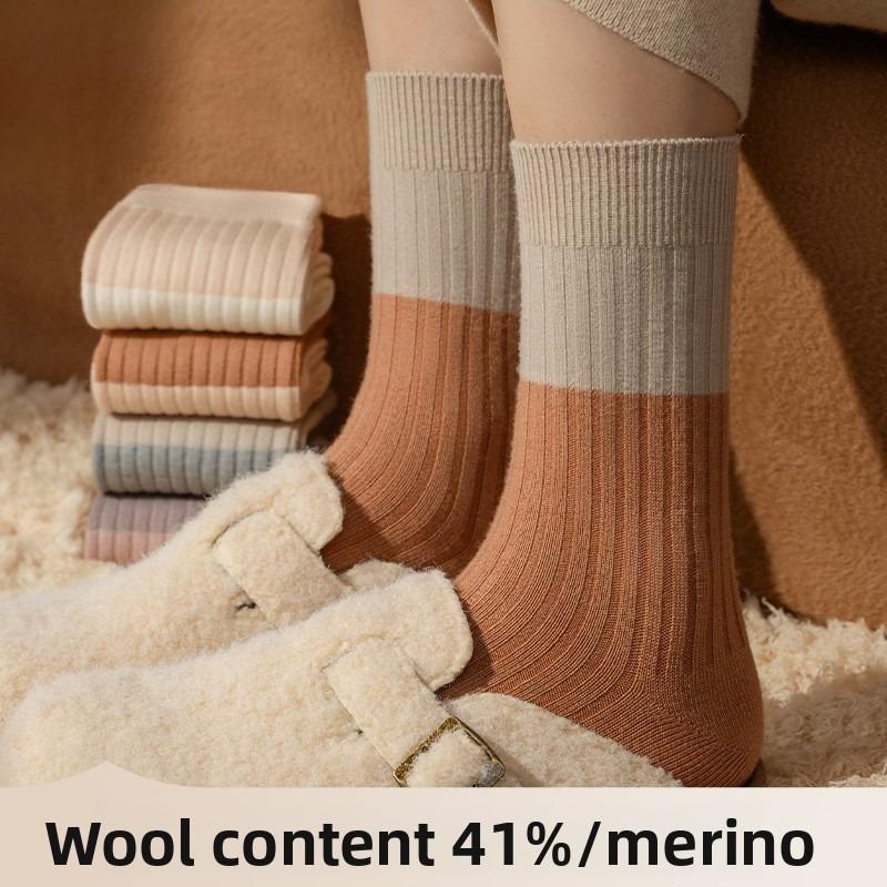 Шерстяные носки для женской осенне-зимней теплоты, носки средней длины, антибактериальные шерстяные носки
