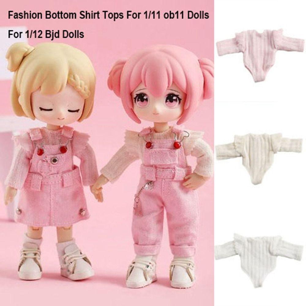 3 Colors Bottom Shirt Tops Fashion Long/Short Sleeve Shirts for 1/11 ob11 Dolls For 1/12 Bjd Dolls