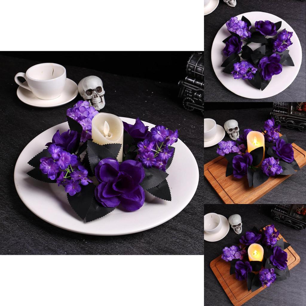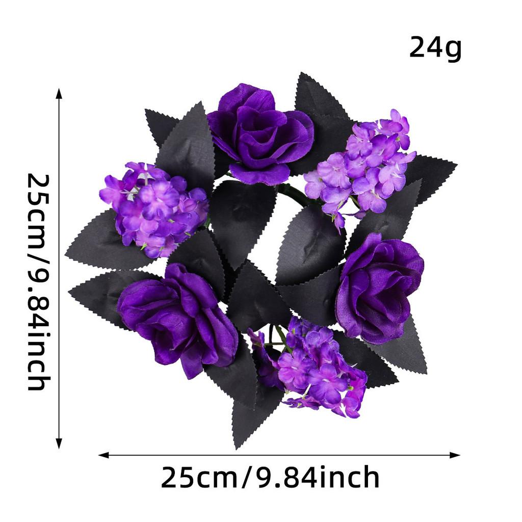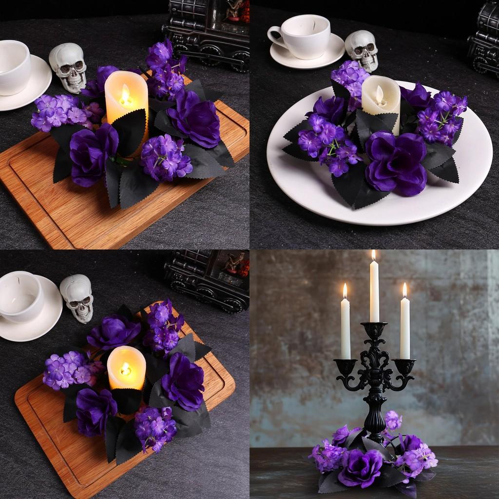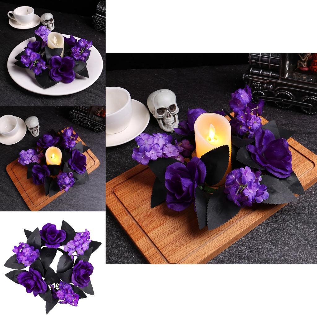 Halloween Purple Rose Candle Ring Decor With Synthetic Flowers For Venue Decoration And Festive Display