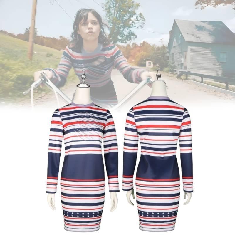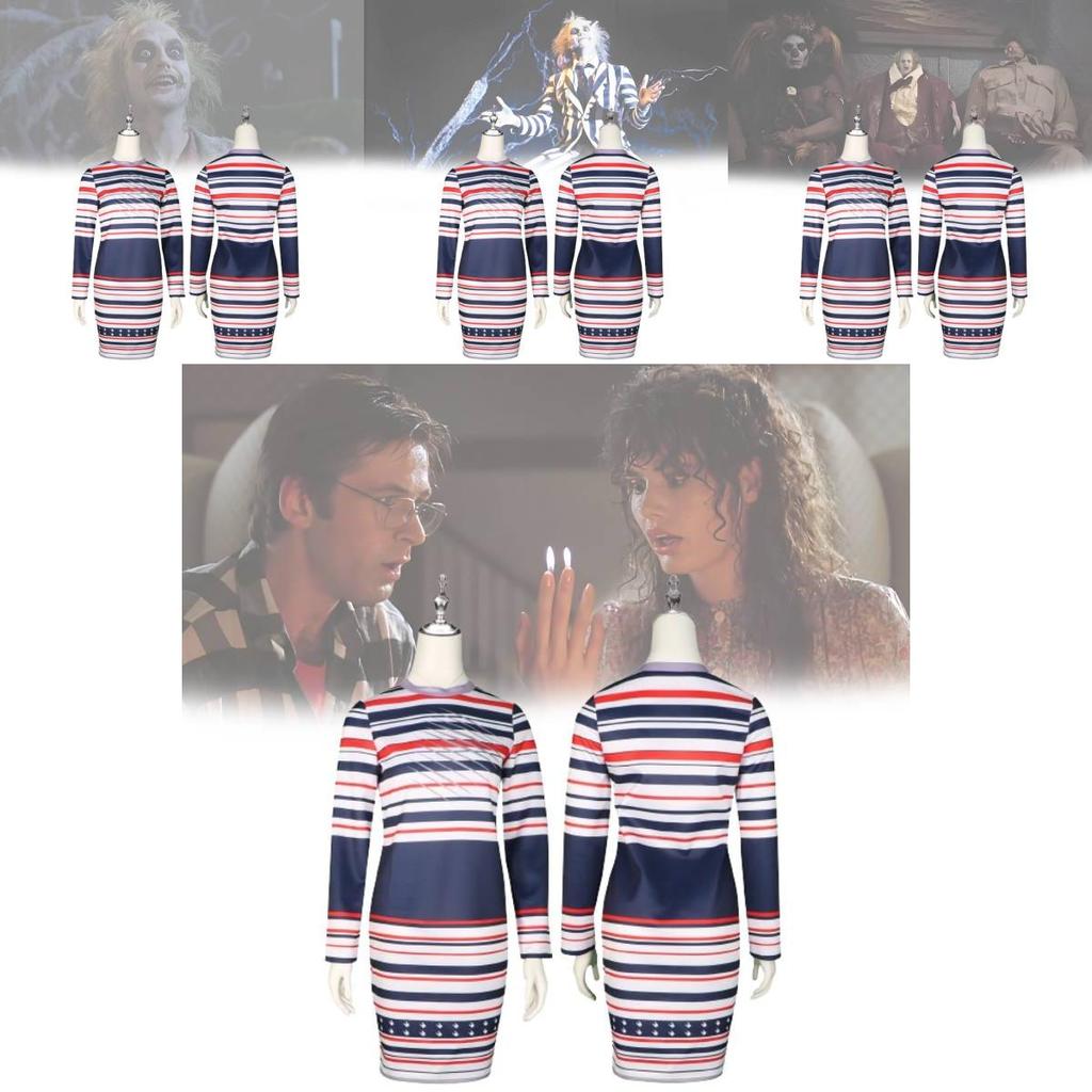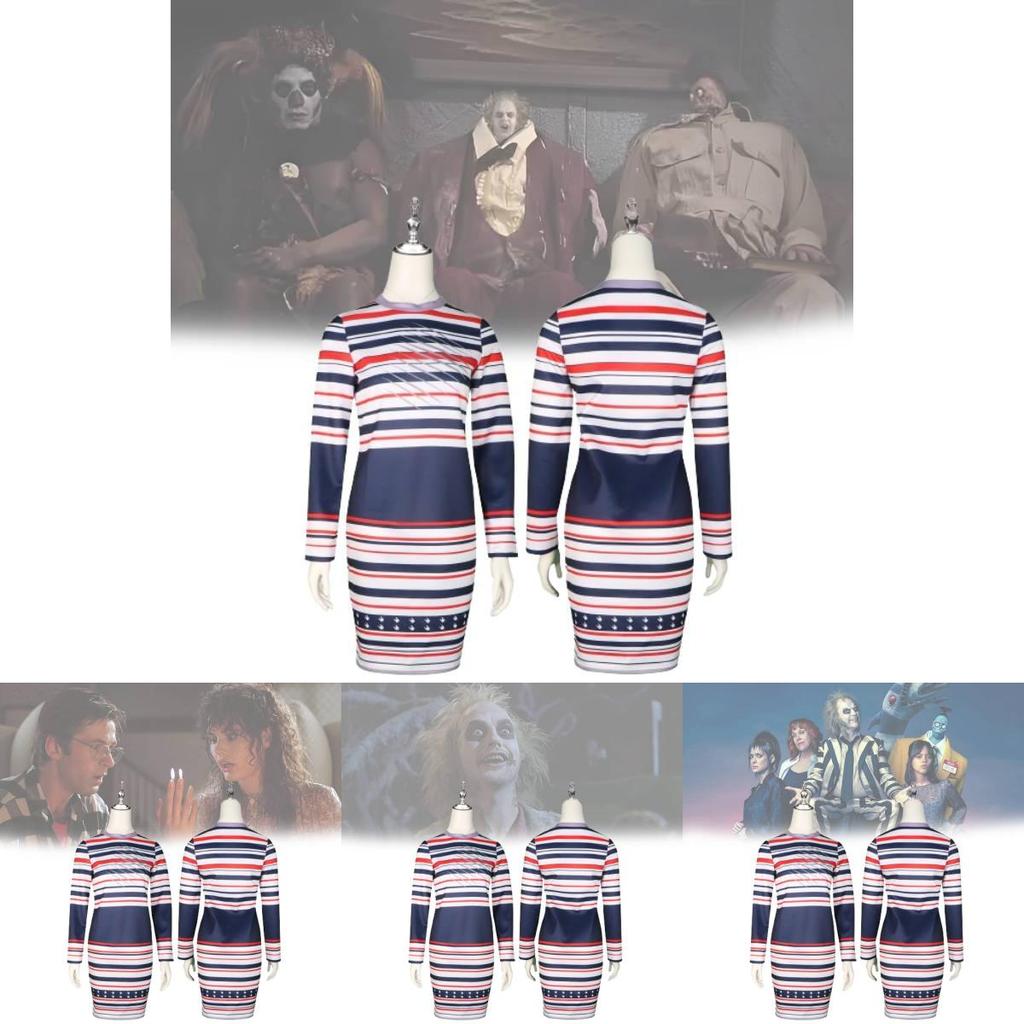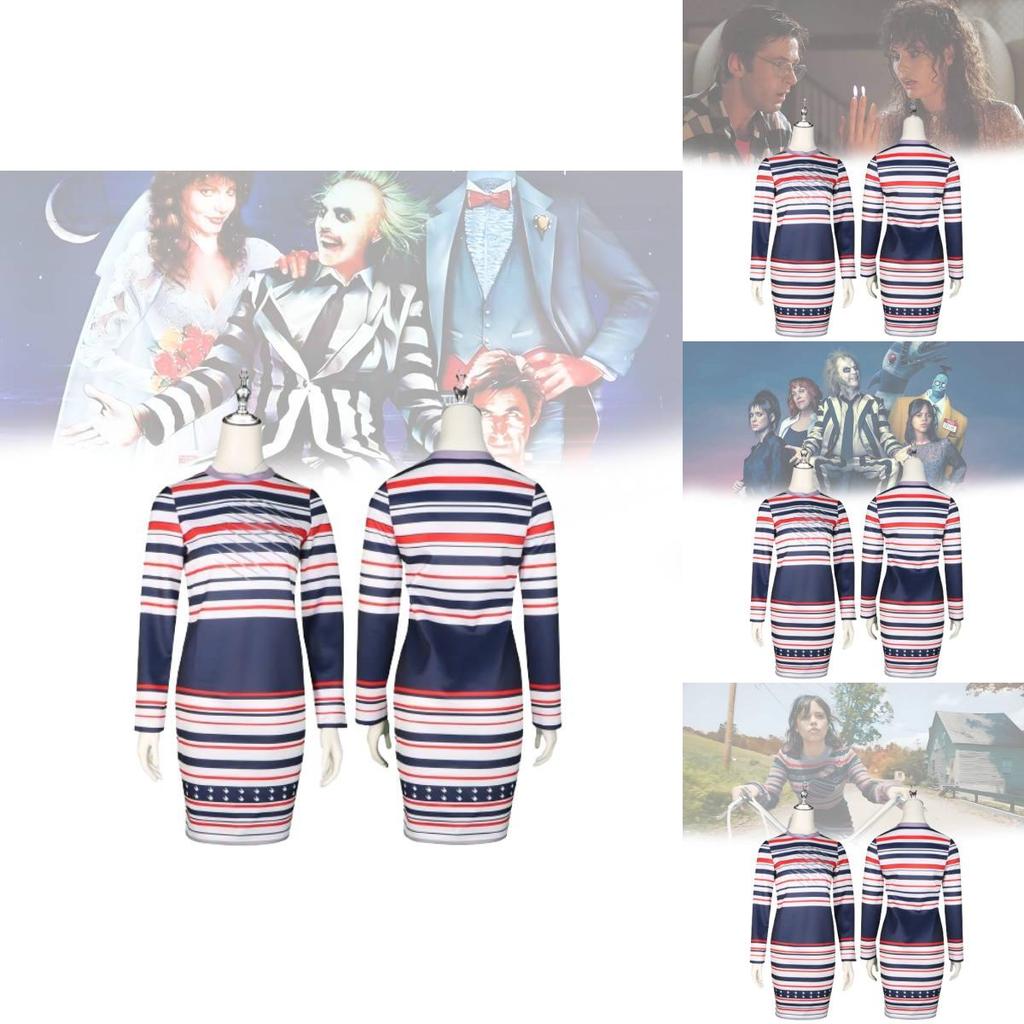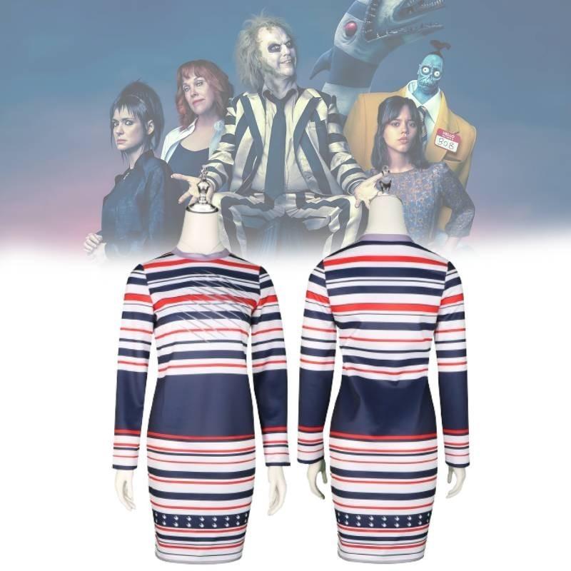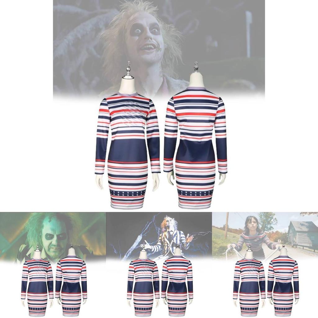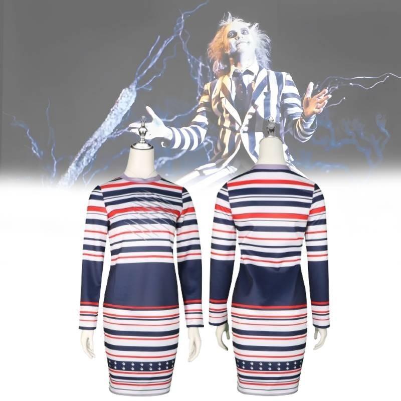 Костюм для косплея Битлджуса, полосатое платье Астрид для ролевых игр на Хэллоуин