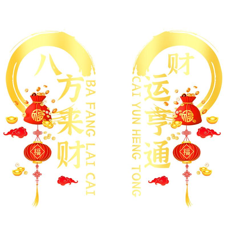 Новогодние наклейки на окна для украшения магазина, двусторонние водонепроницаемые наклейки на стены, декор «Счастливая удача» для китайского Праздника Весны