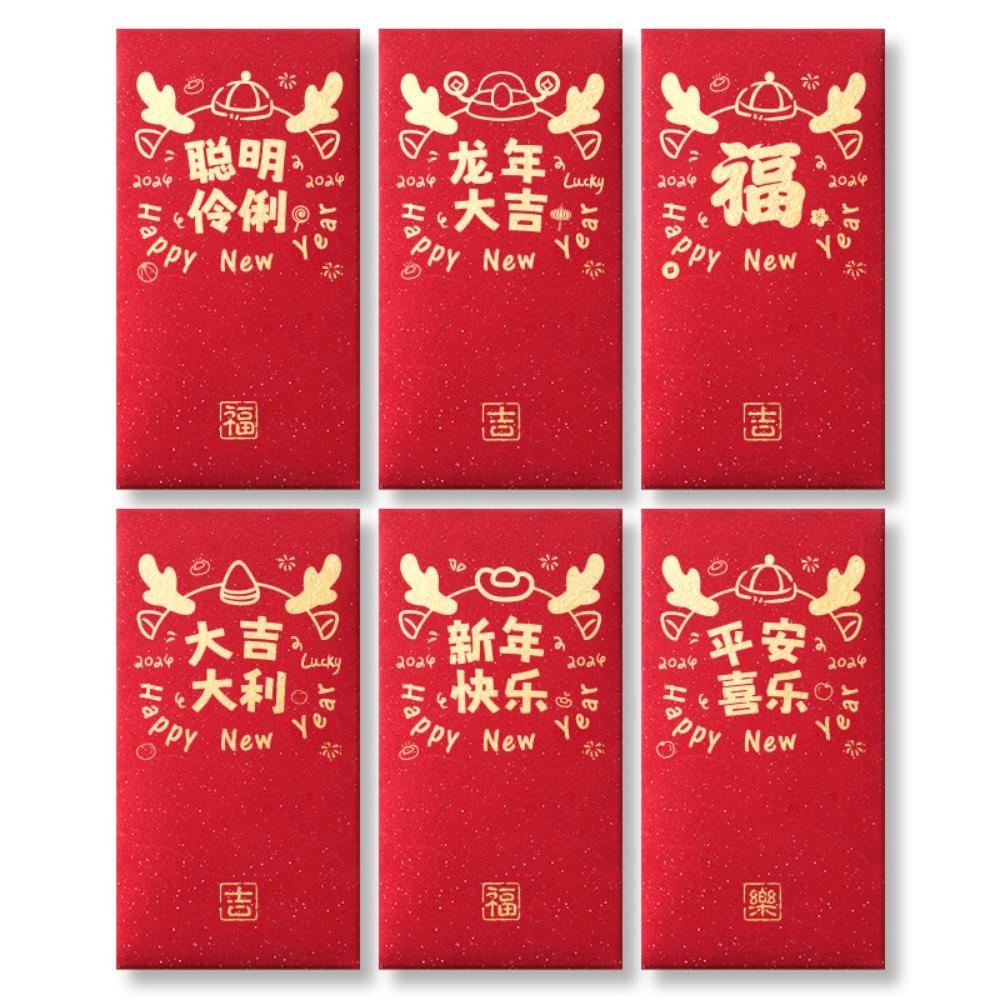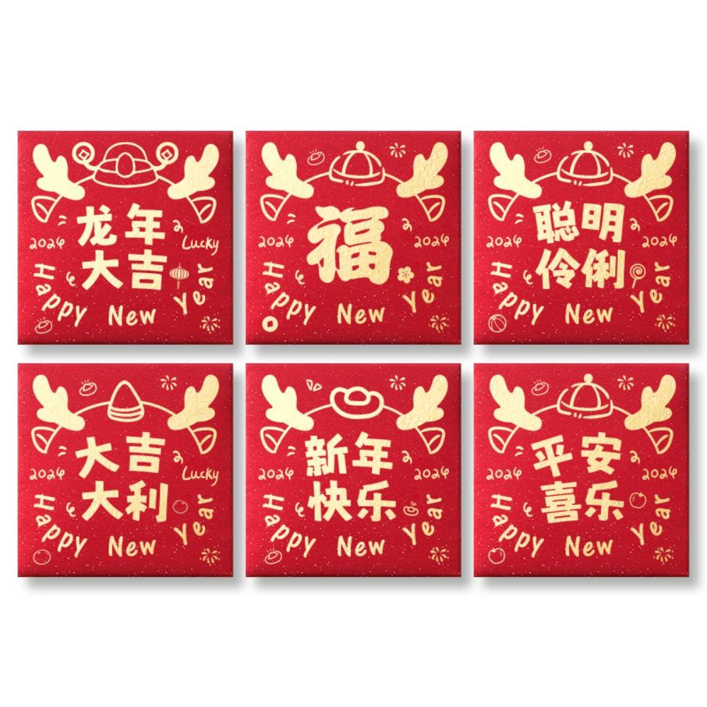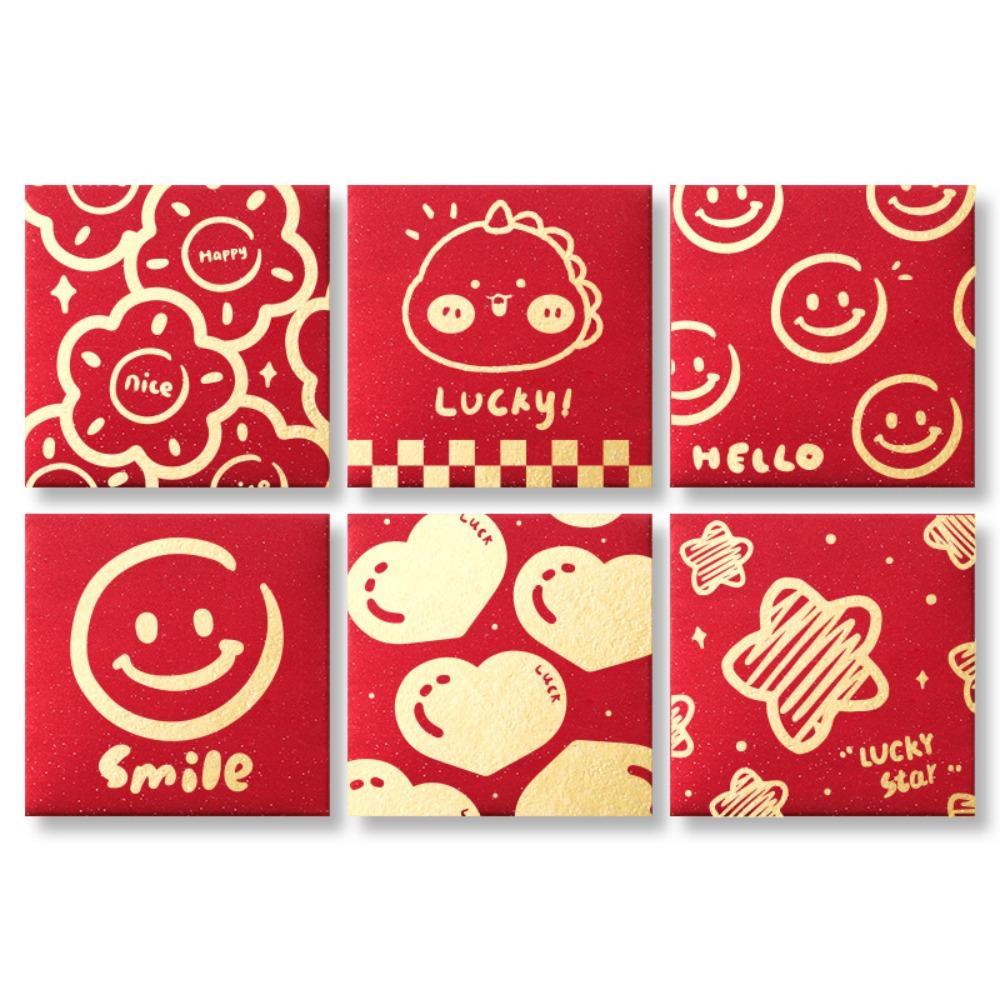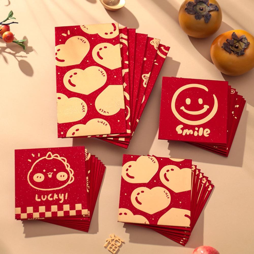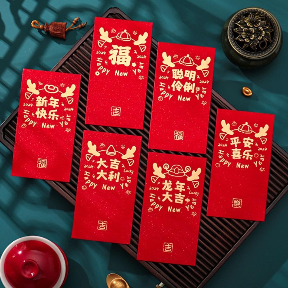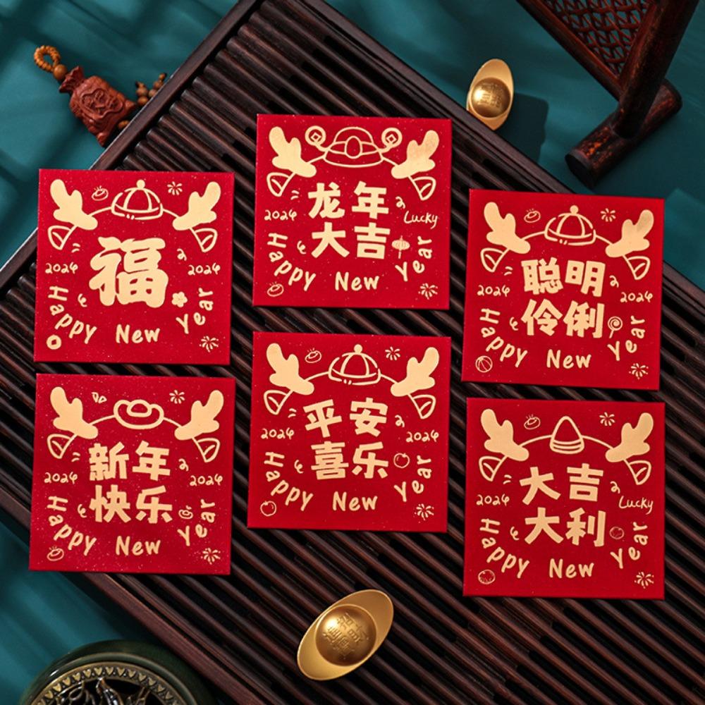6Pcs Stamp Design Chinese New Year Red Envelope Shining Lucky Money Bag Chinese Lunar Year