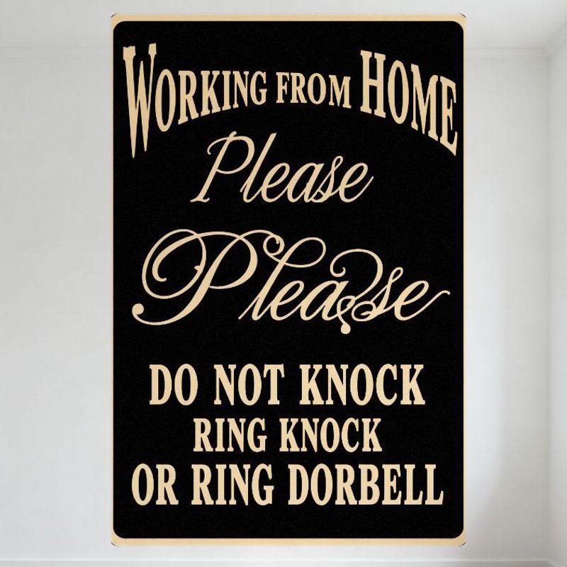 Working From Home Do Not Knock Metal Tin Sign Please Beige Text Vintage Wall Decor for Office Home Studio Bar Man Cave — купить товар онлайн с бесплатной доставкой до всему миру!