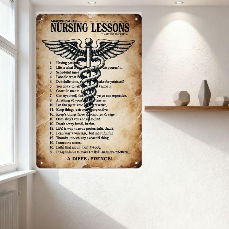 Винтажное Здание Терпения Уроки Сестринского Дела Кадуцей Металлическая Жестяная Табличка Деревенский Антикварный Медицинский Юмор Декор для Дома Офиса Мужской Пещеры