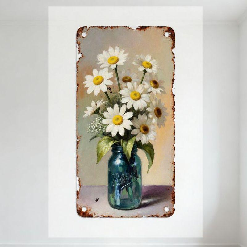 Винтажная деревенская металлическая жестяная табличка с банкой Мейсона цвета пекан и голубыми и белыми ромашками, деревенский домашний декор для кафе в деревенском стиле, бара, мужской пещеры