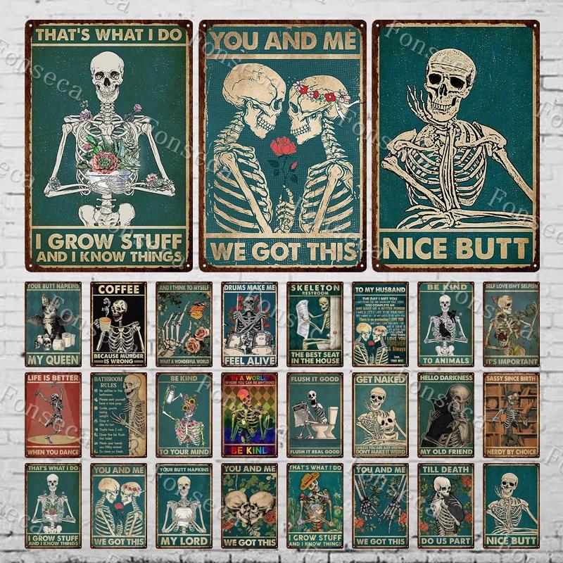 Ретро Жестяная Вывеска с Человеческим Скелетом Садоводство Это То, Что Я Делаю Я Выращиваю Вещи и Я Знаю Вещи Кактус Винтажный Шик Металлический Постер