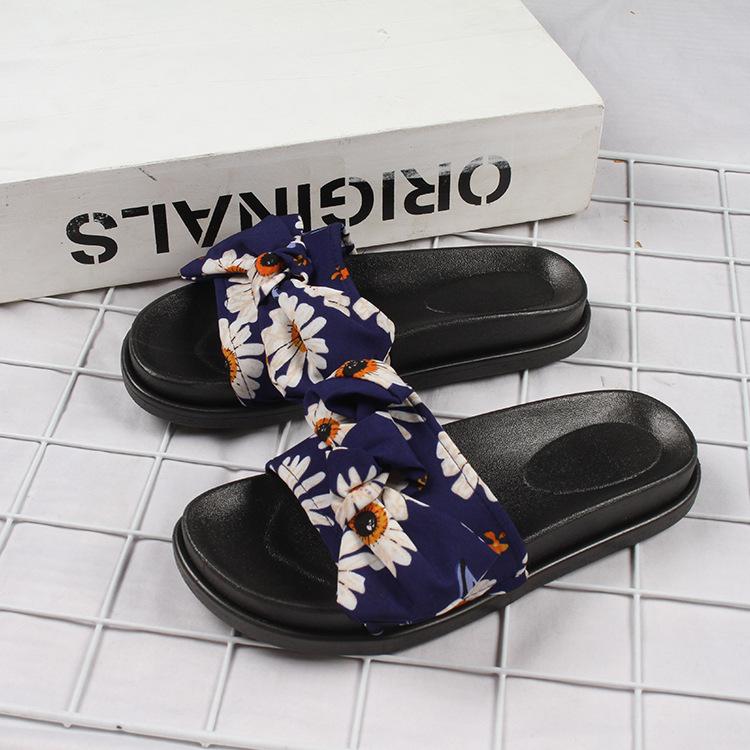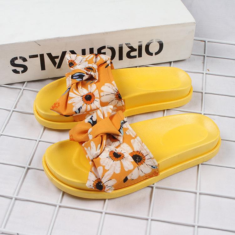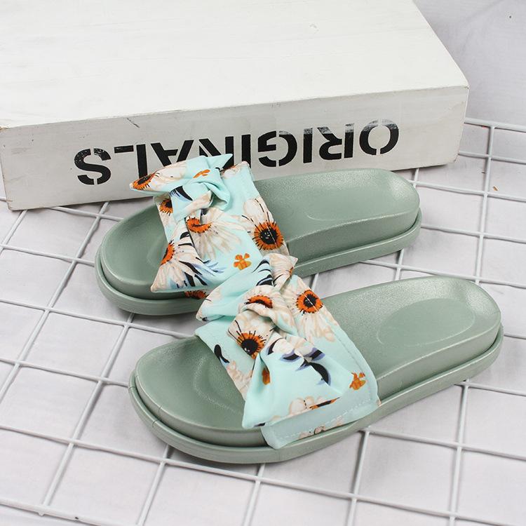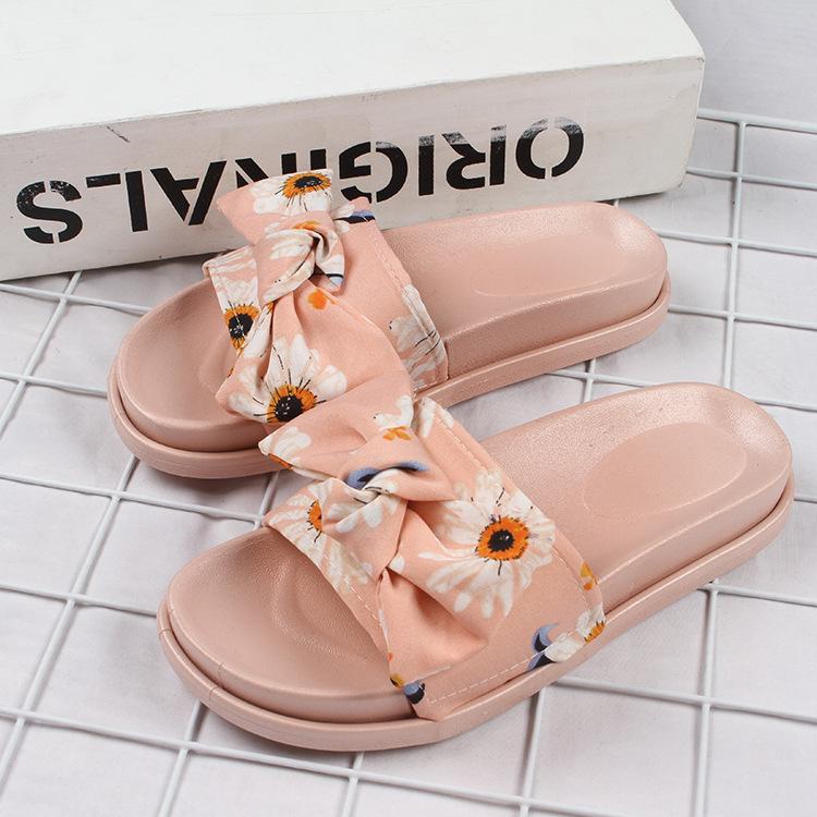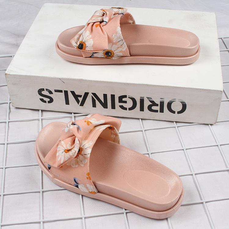 Новые женские тапочки, модная повседневная одежда для дома и улицы, летние сандалии и тапочки с бантом на плоской подошве