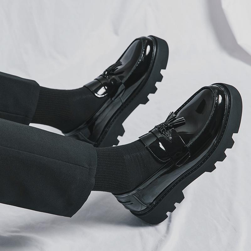 Мужские мокасины из лакированной кожи на толстой подошве. Модные стили. Для свадьбы и офиса. Для отдыха. Для бизнеса. Для вечеринок на свежем воздухе. Размеры больших размеров 38–45.