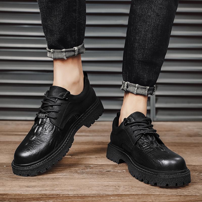 Мужские туфли из натуральной кожи на толстой подошве в модном повседневном стиле для отдыха на природе, для вечеринок, для офиса, для взрослых, классические черные туфли