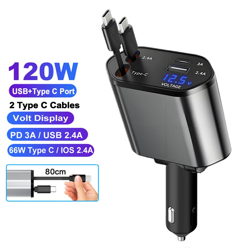 120W Car Retractable Charger,Starry Sky Roof Light,Super Fast Phone Charger Cigarette Lighter Adapter for iPhone Android