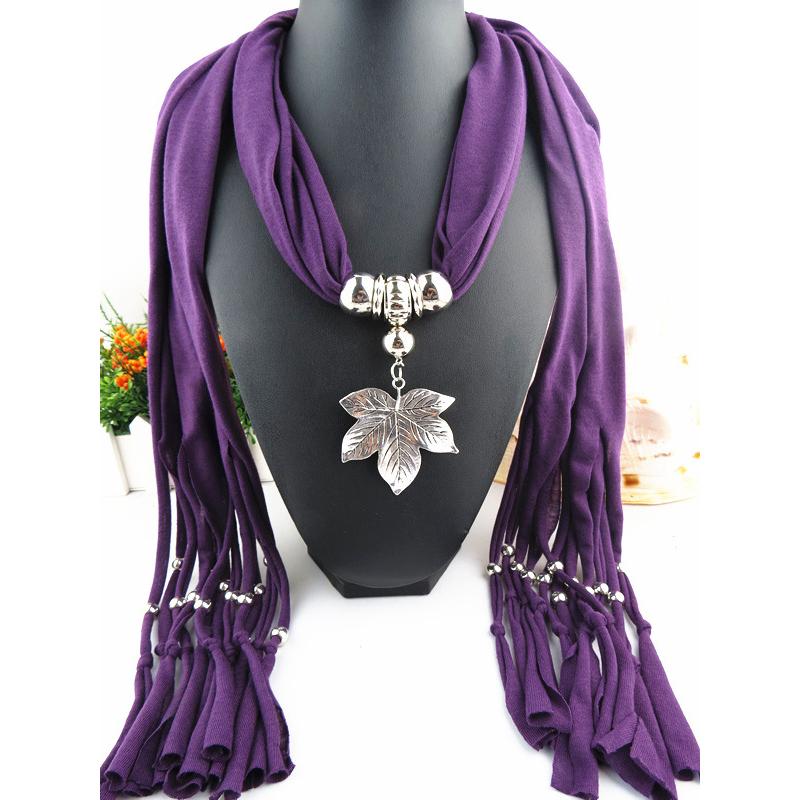 Элегантный полиэстеровый шарф-снуд с подвеской в виде листа и кисточками – Женский модный однотонный шейный платок — купить товар онлайн с бесплатной доставкой по всему миру!