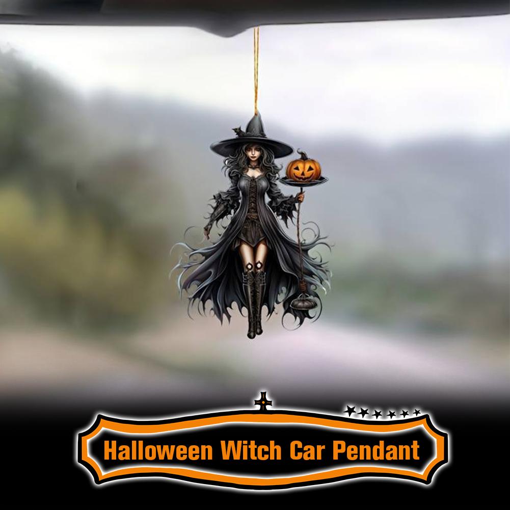 Готический кулон ведьмы, 2D акриловое украшение на Хэллоуин для зеркала заднего вида автомобиля, жуткое винтажное готическое подвесное украшение для кулона автомобиля