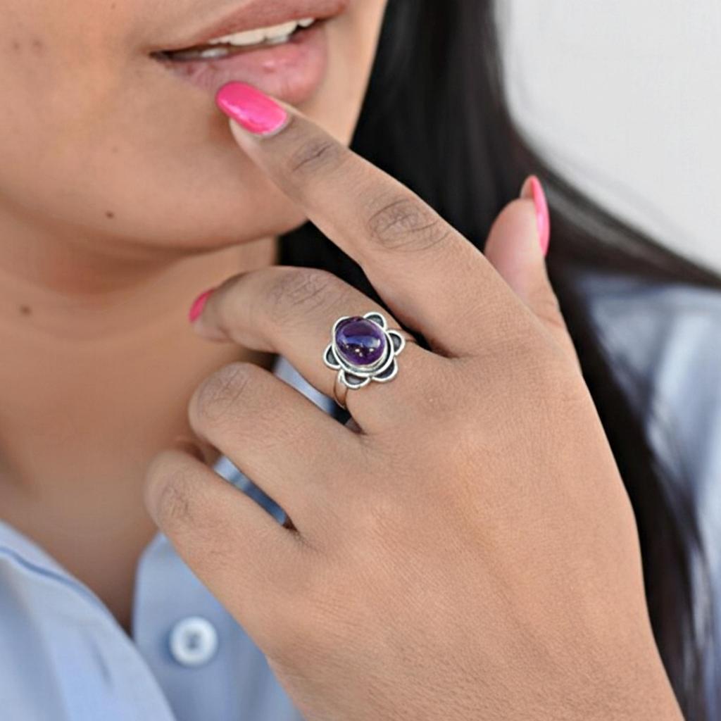 Фиолетовое кольцо-цветок из аметиста, ювелирное изделие из стерлингового серебра 925 пробы, минималистичное цветочное кольцо для женщин, подарок для нее