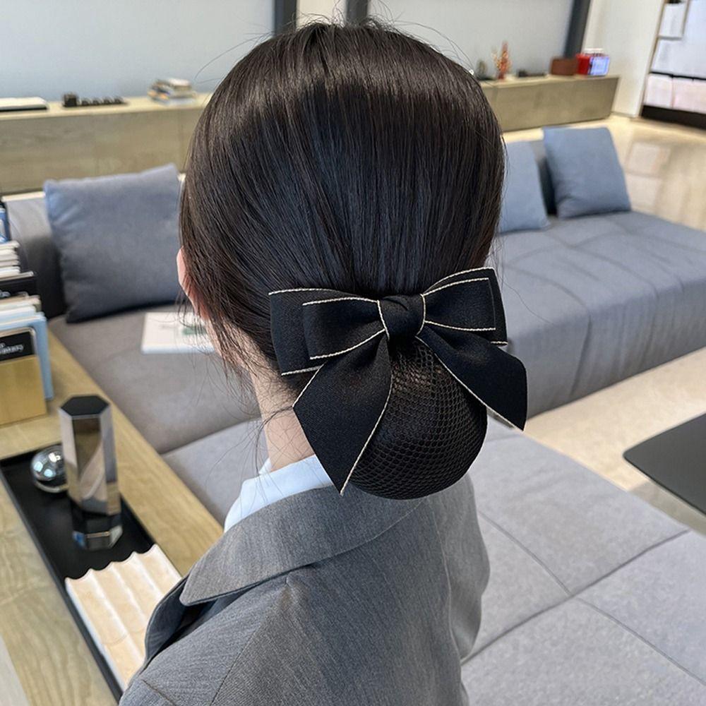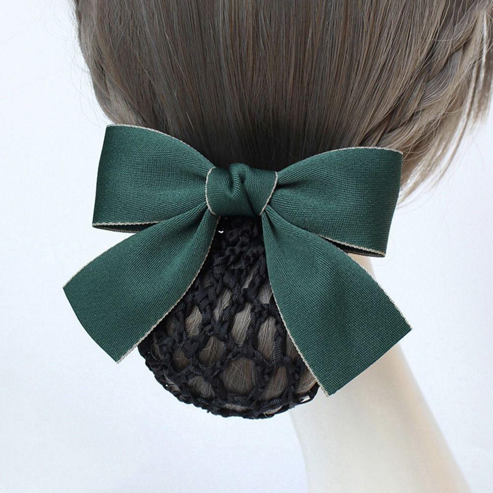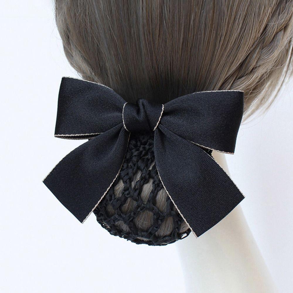 For Female Nurse Headwear Hotel Ponytail Clip Korean Bun Snood Bow Spring Clip Hairgrips Cover Net