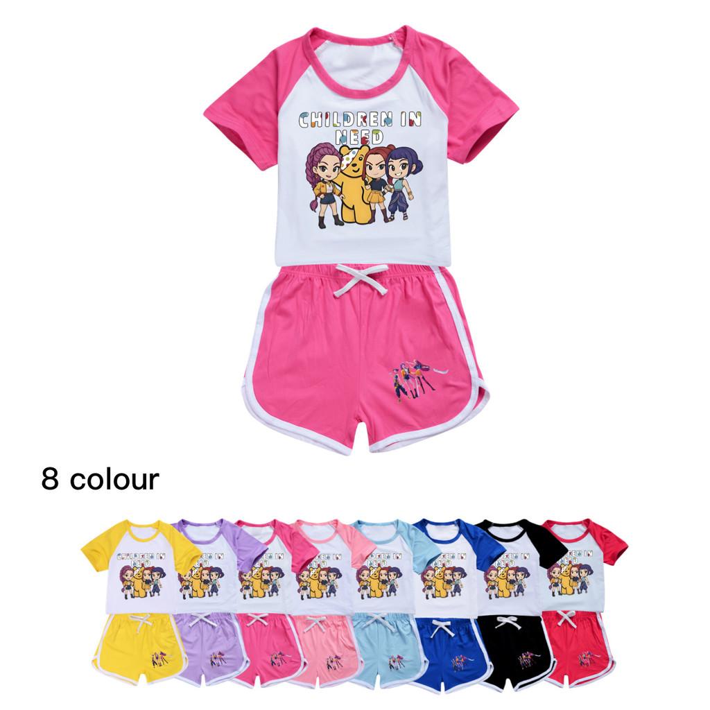 5103 Детский Девочки POP Rumi Zoey Mira Принт Футболка Шорты Спорт Спортивный Костюм Комплект Одежды
