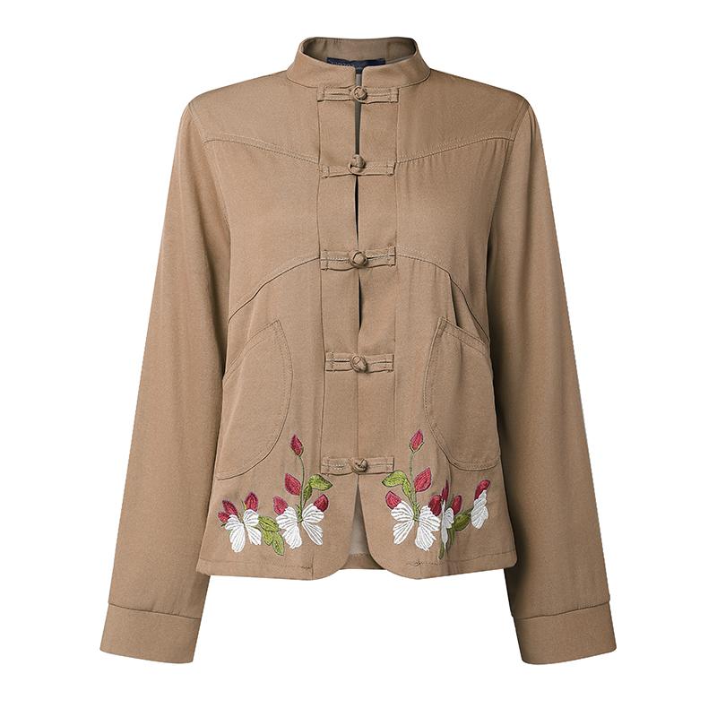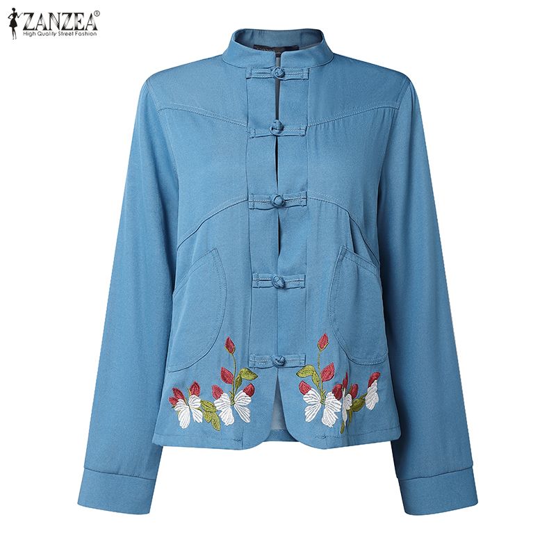 ZANZEA Женская повседневная блузка с воротником-стойкой, длинными рукавами и цветочной вышивкой