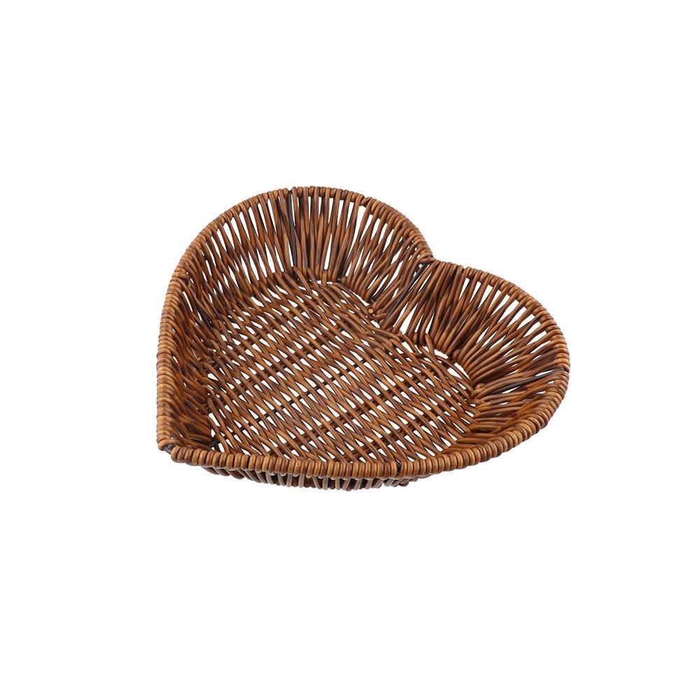 Simulation Rattan Heart-Shaped Woven Storage Basket Large Capacity Serving Display Basket Desktop