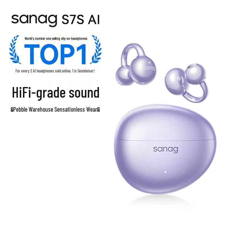 Saina S7S AI Open-Ear Wireless Noise-Cancelling Ear-Clip Headphones