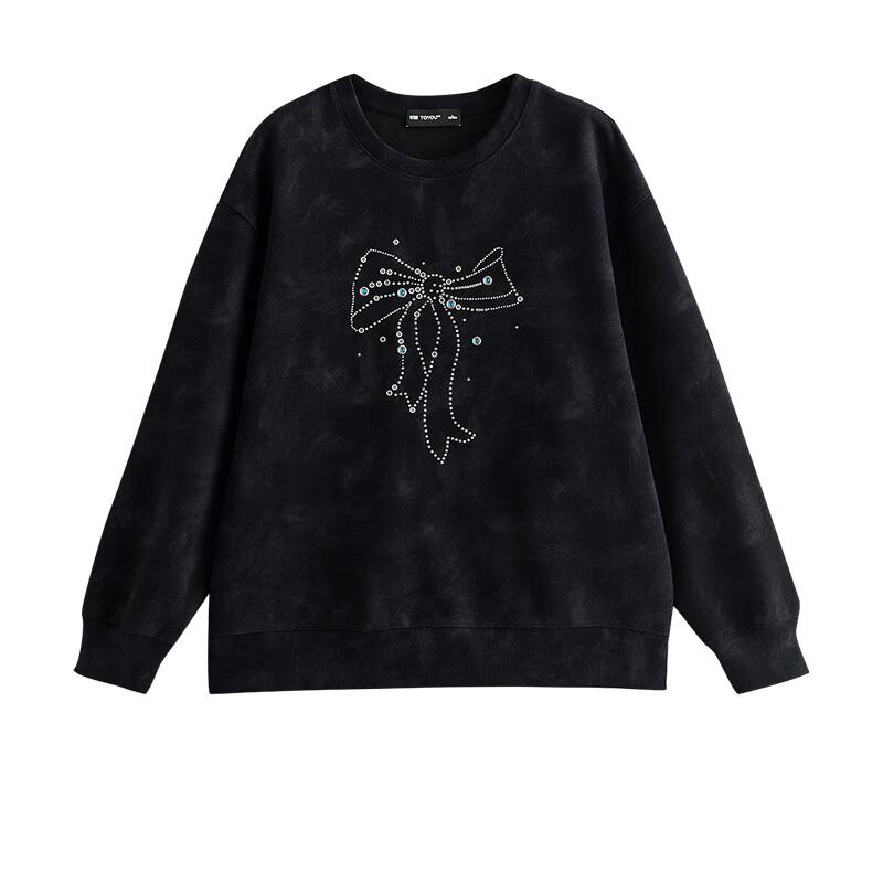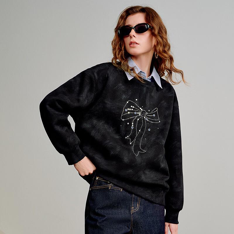 Женский свободный свитшот из смесового хлопка с бантом и стразами