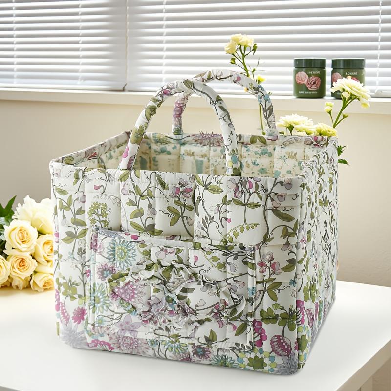 Высококачественные Очаровательные Цветочные Тканевые Ящики для Хранения с Ручками - Портативный, Многосекционный Органайзер для Одежды, Нижнего Белья и Аксессуаров - Идеально для
