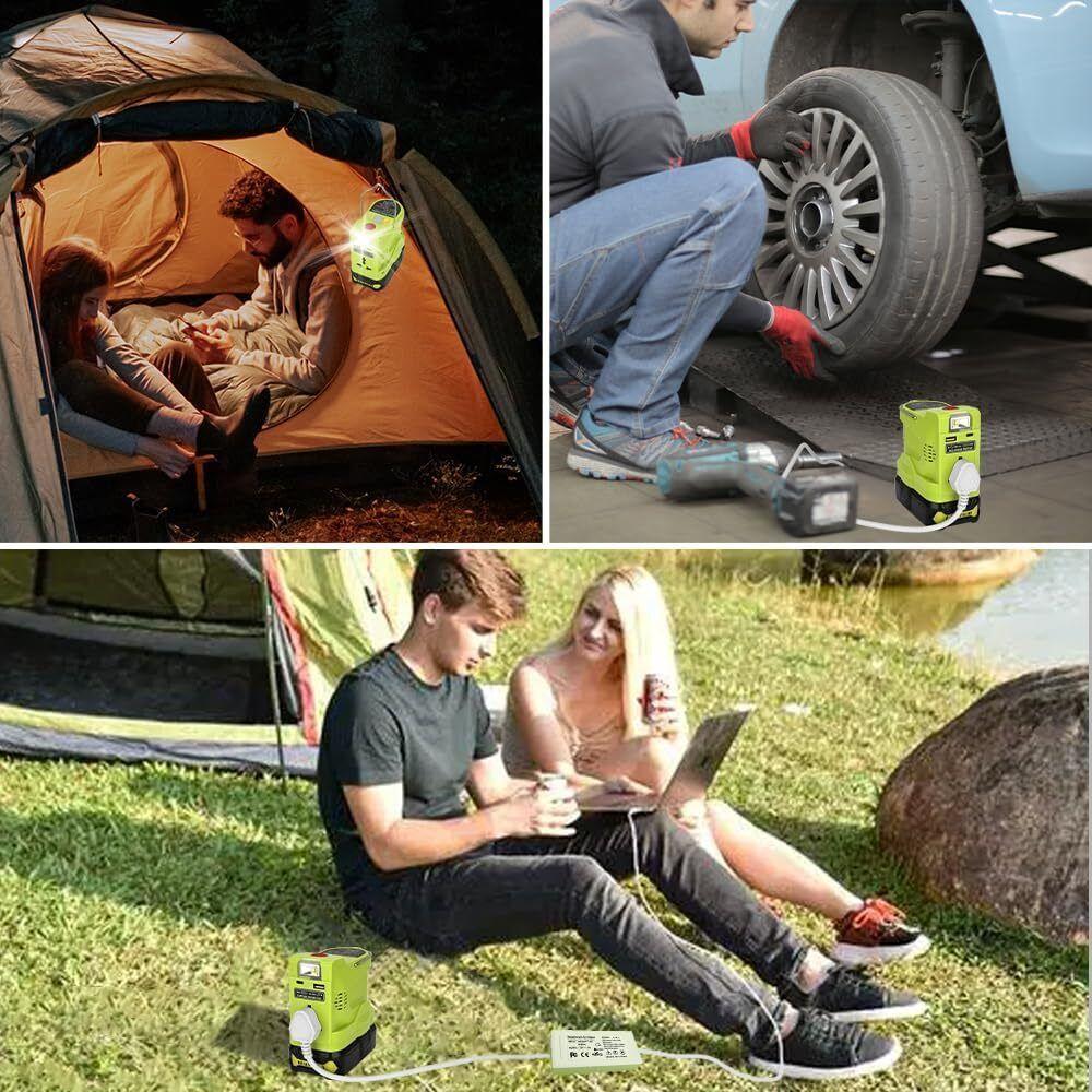 Портативный инвертор 200 Вт для литиевой батареи Ryobi 18 В, генератор с USB Type-c, светодиодная лампа 280 лм, розетка переменного тока