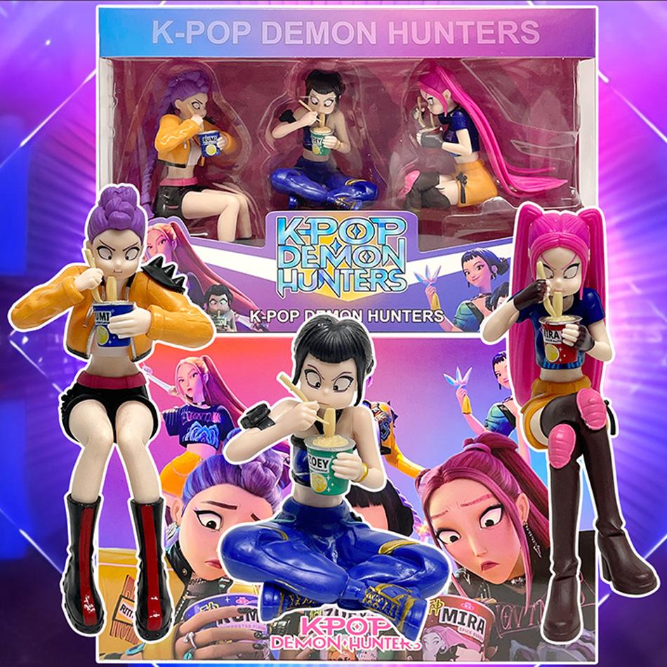 НОВЫЕ Аниме Kpop Охотники на демонов сценические куклы Игрушки Руми Мира Зои Фигурка Действия ПВХ Игрушка Сидит и ест лапшу быстрого приготовления Девушка подарок