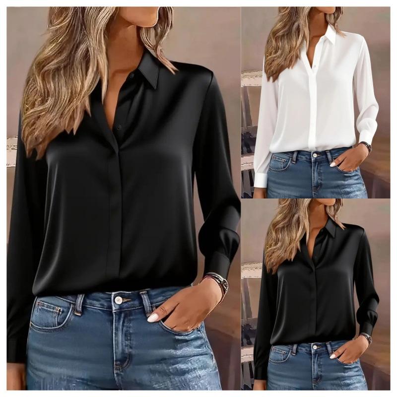 Новая осенняя однотонная рубашка с длинным рукавом и лацканами для женщин