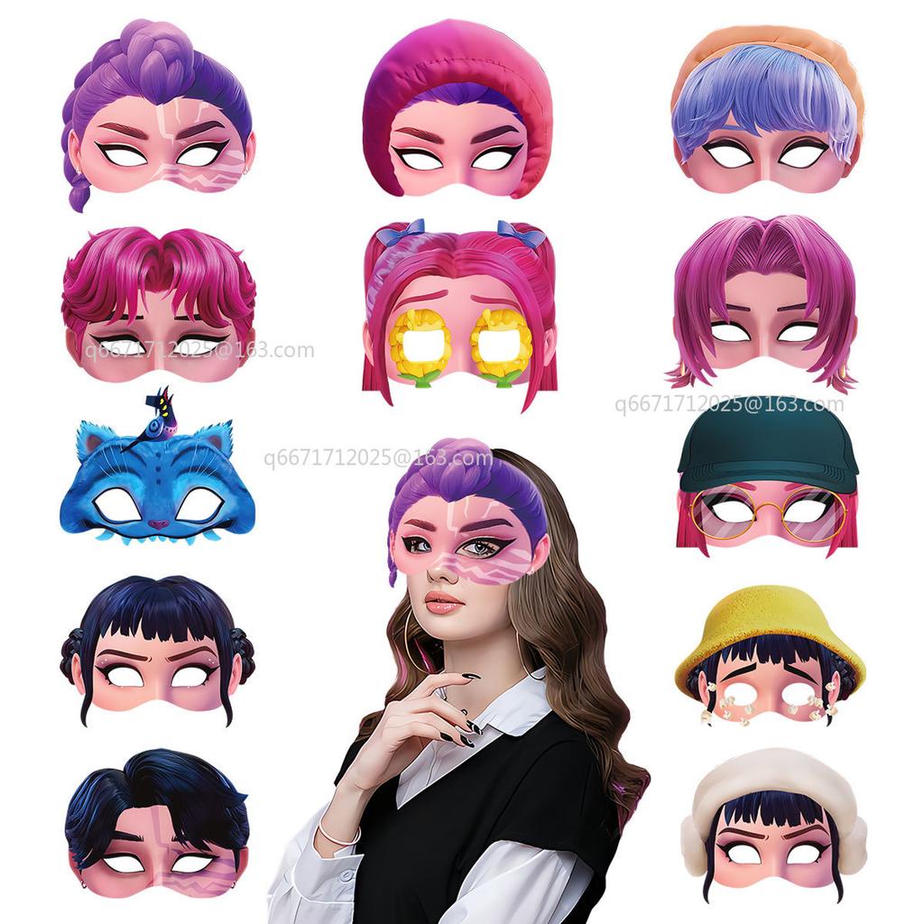 12 шт. K-pop Маска охотников на демонов Вечеринка по случаю дня рождения Косплей-вечеринка Реквизит для фотографии Украшения Девочки Мальчики Подарки на Хэллоуин