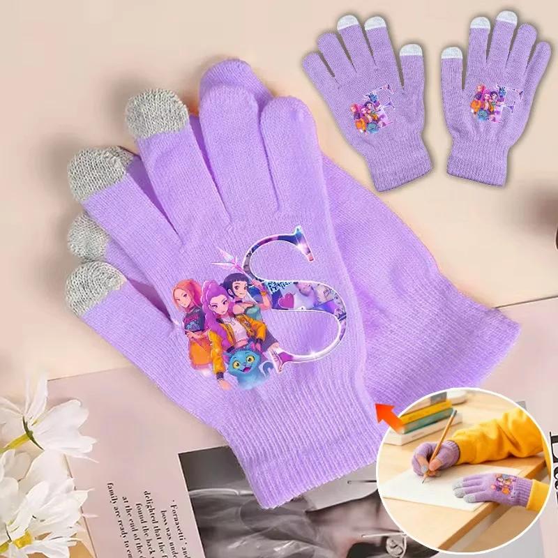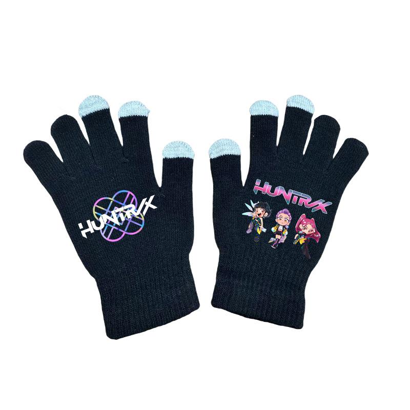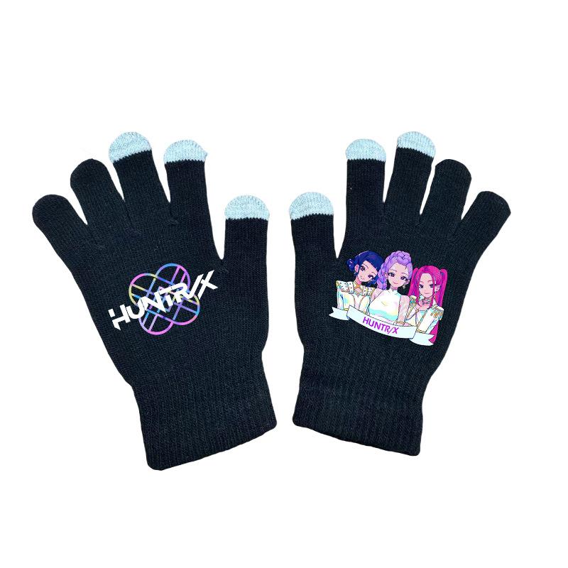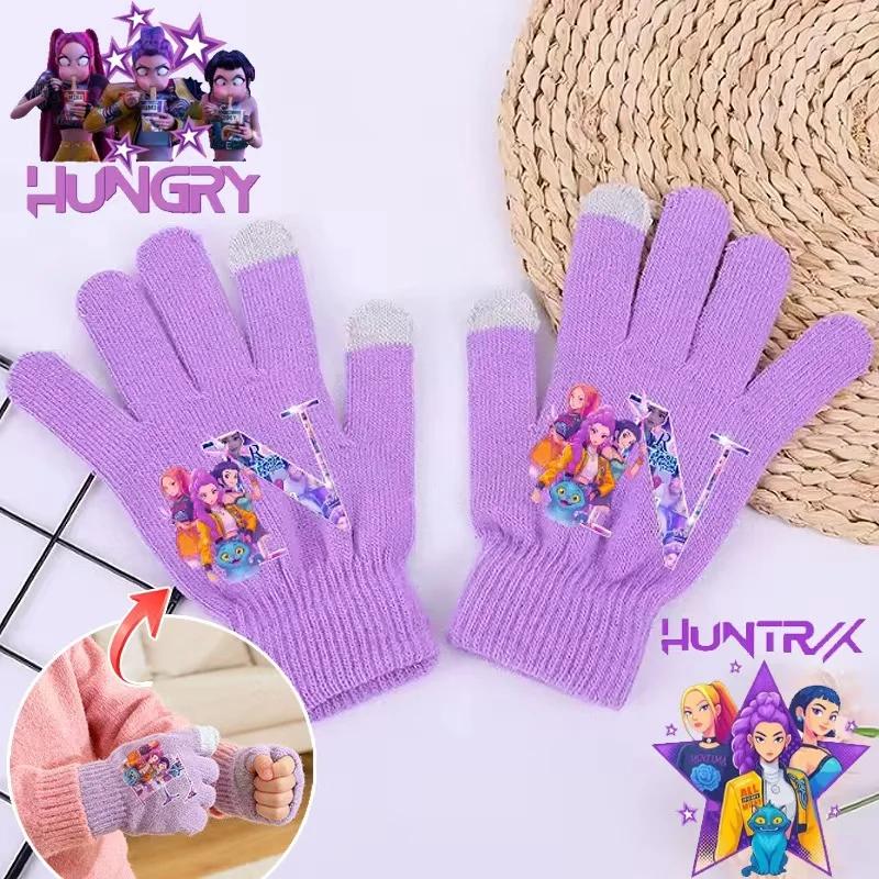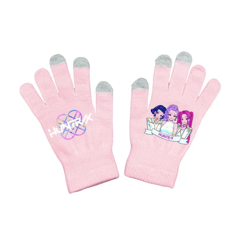K-pop Перчатки Охотницы на демонов Кавайные Мультяшные Принтованные Вязаные Перчатки Детские Зимние Уличные Теплые Перчатки Детские Подарки на День рождения