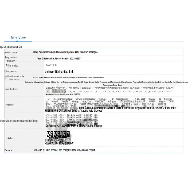 Clear Men Anti-Dandruff Refreshing Oil Control Shampoo, 2x900g