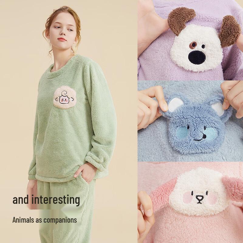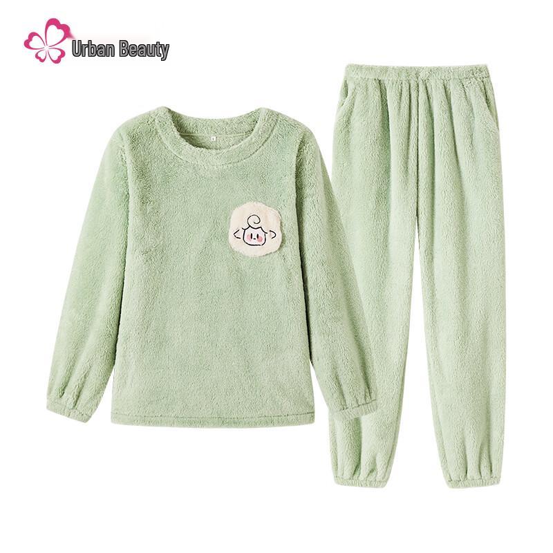Женский теплый пижамный комплект из кораллового флиса с длинным рукавом