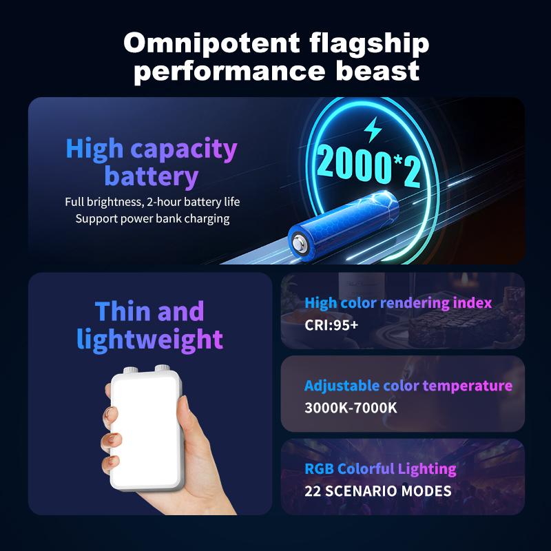 RGB Видеосвет 25 Вт Карманный свет для камеры Полноцветный Портативное фото- и видеоосвещение Мини светодиодный заполняющий свет 4000 мАч Перезаряжаемый