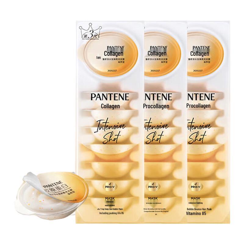 This Pantene Deep Water Bubble Bomb Hair Mask provides intensive nourishment to repair, moisturize, and smooth your hair, leaving it resilient and bright. Each package contains 3 boxes, with each box holding 8 capsules of 12ml each, totaling 288ml. Crafted in Mainland China, this non-special cosmetic product has a shelf life of 3 years.