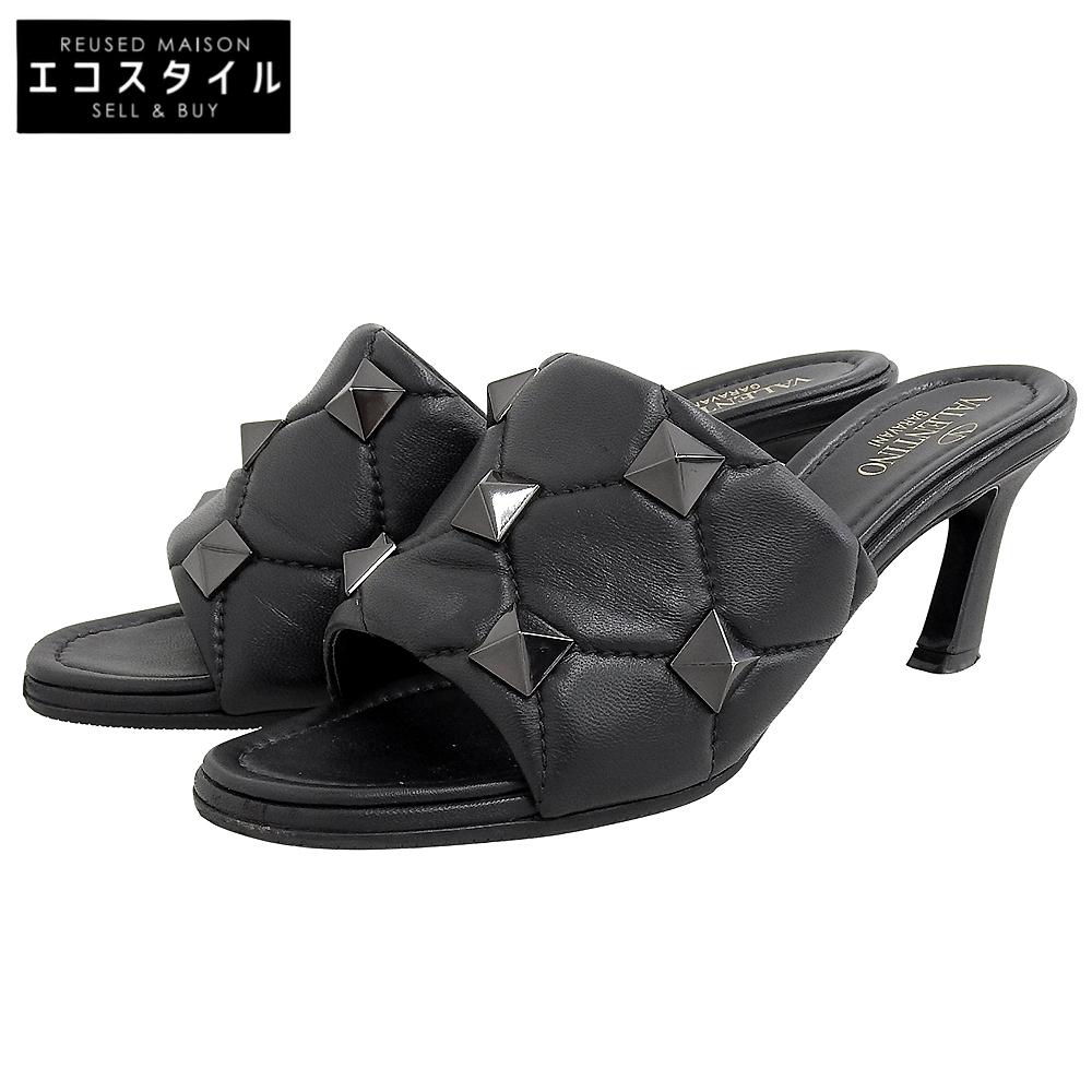 Valentino Garavani Women's Leather Pyramid Studs Open-Toe Heel Sandals, Black, Size 36, VSW BK3 shoes 36 blackUsed — купить товар онлайн с бесплатной доставкой до всему миру!