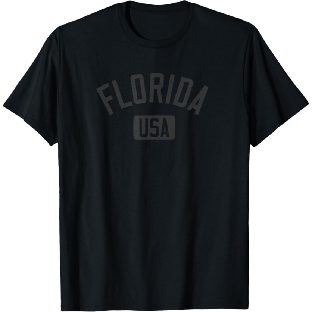 Футболка с арочным текстом Флорида США, состаренный черный принт