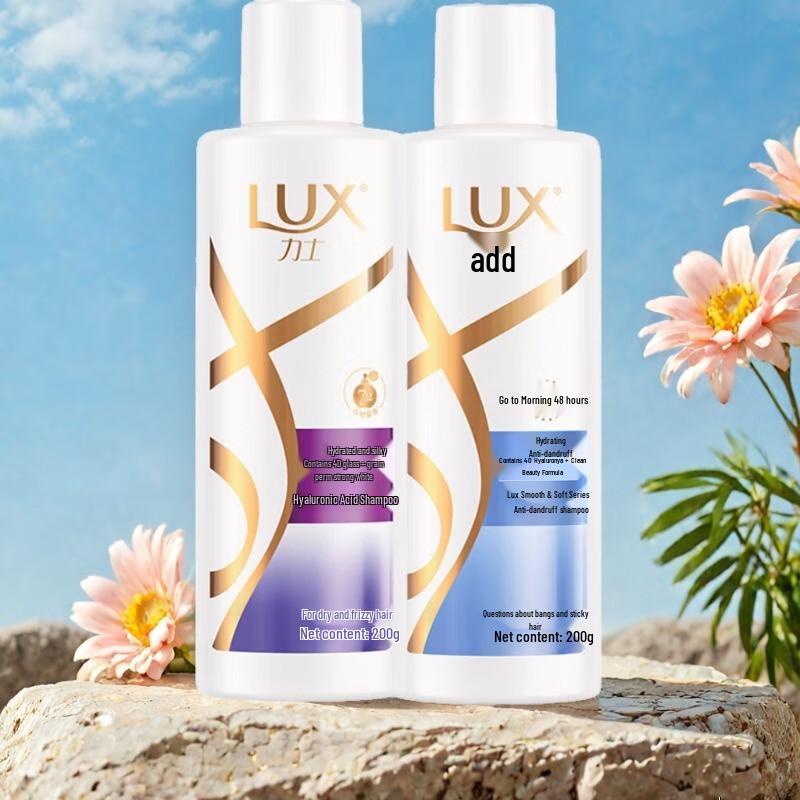 Experience the luxurious care of LUX with this Hydrating Smooth Shampoo and Anti-Dandruff Shampoo set. Infused with Hyaluronic Acid, it deeply hydrates, smooths, and leaves a lasting fragrance. Suitable for normal hair and various scalp types, this set ensures soft, manageable, and flake-free hair with a 3-year shelf life.
