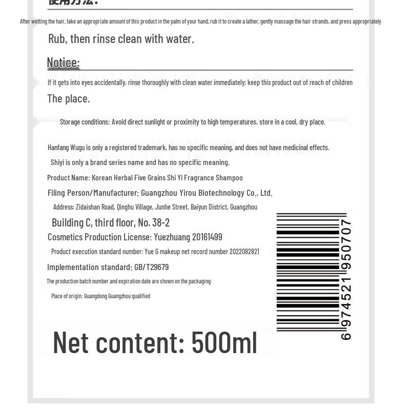 Hanfang Wugu Shiyi Scented Shampoo