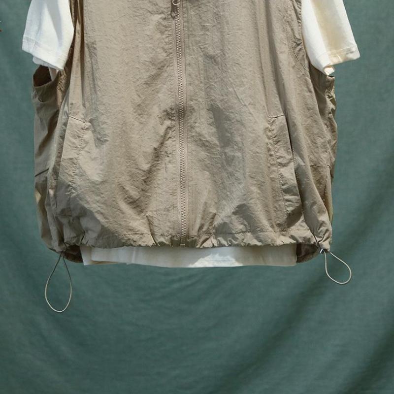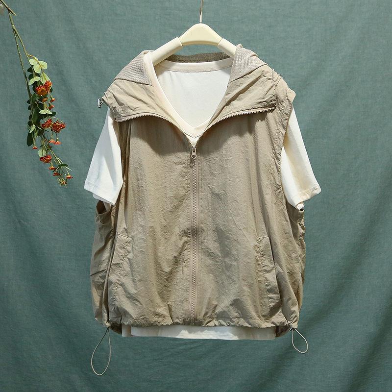 Летние женские жилеты-карго с застежкой-молнией и капюшоном, повседневные, свободные, однотонные, для спорта на открытом воздухе, прохладные, быстросохнущие, тонкие, плиссированные, для улицы, универсальные