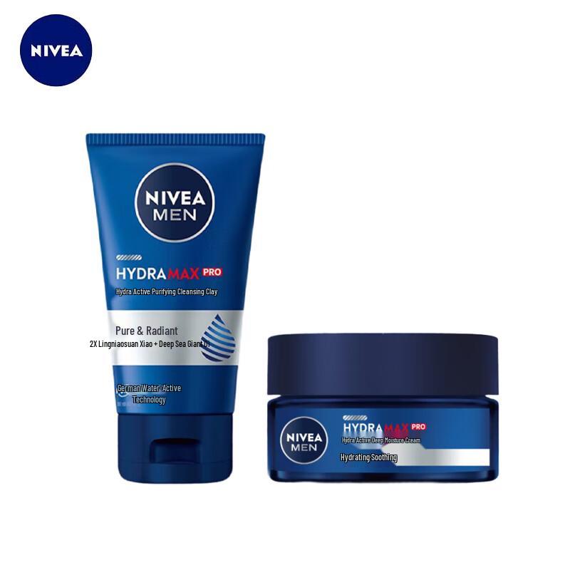 This NIVEA MEN Hydrating Facial Cleanser & Moisturizer Set is designed for men's skincare. The set includes a 100g Hydrating Deep Clean Facial Mud and a 50g Hydrating Deep Moisturizer. It provides deep cleansing, oil control, and long-lasting hydration, leaving skin feeling fresh and revitalized. Suitable for multiple skin types, it helps purify, rejuvenate, and lock in moisture.