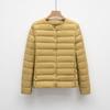 Легкая женская короткая куртка с круглым вырезом на осень и зиму, теплая куртка с круглым вырезом, однотонный пуховик