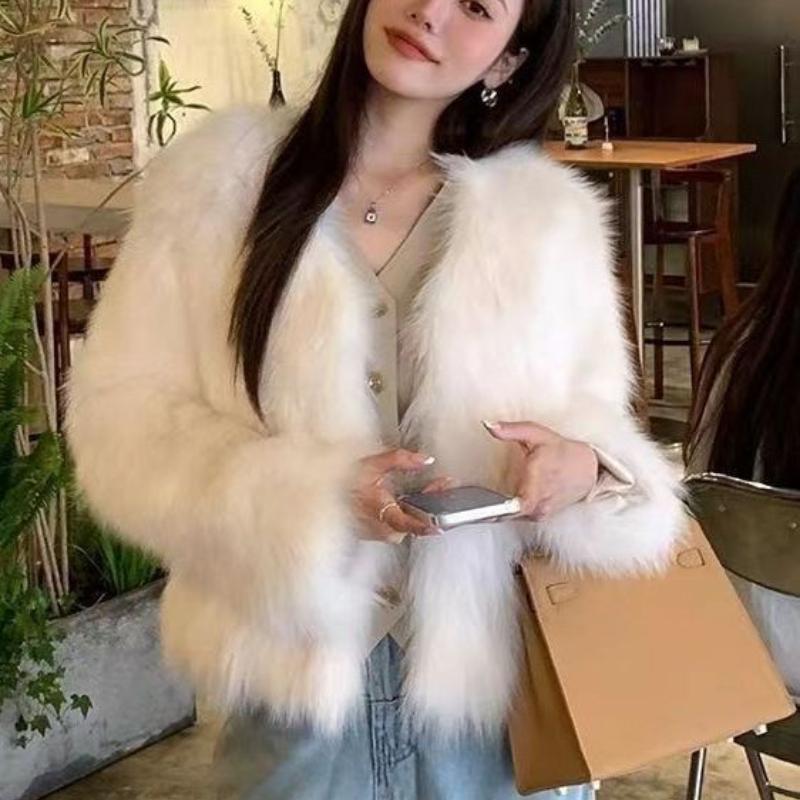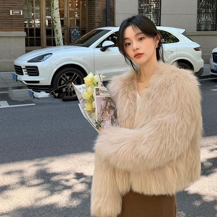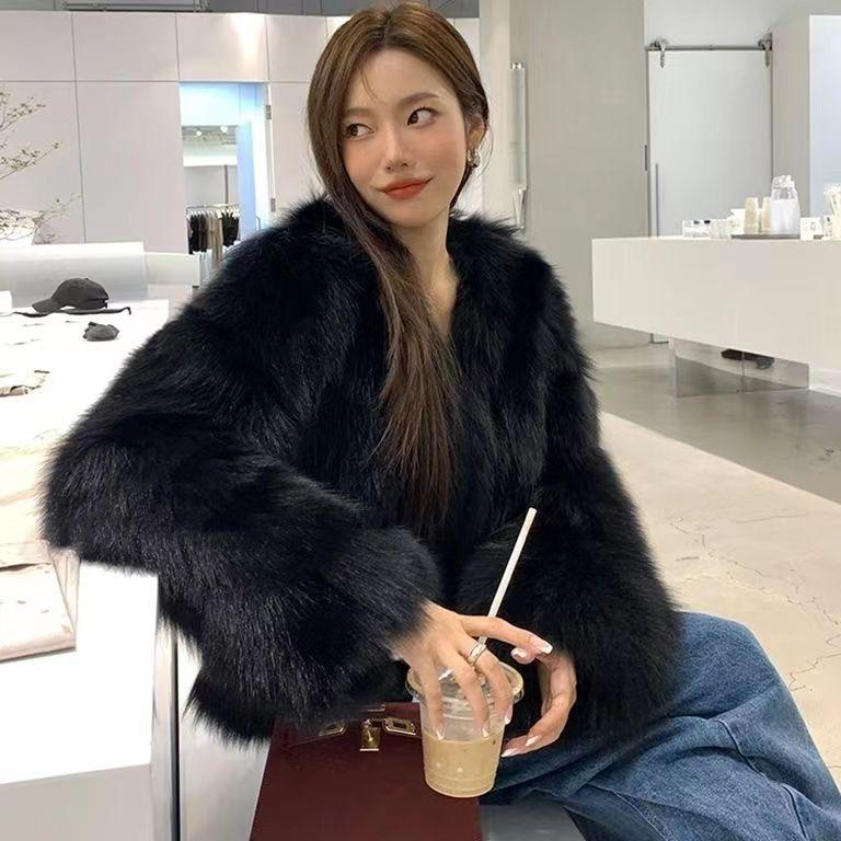 Женская зимняя мода искусственный мех лисы короткая свободная корейский стиль плюшевый мех женская шуба