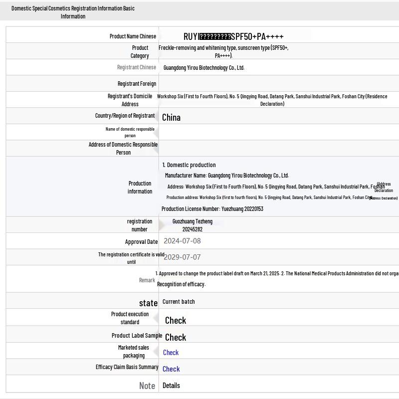 RUYI SPF50+ PA++++ Whitening & Brightening Sunscreen