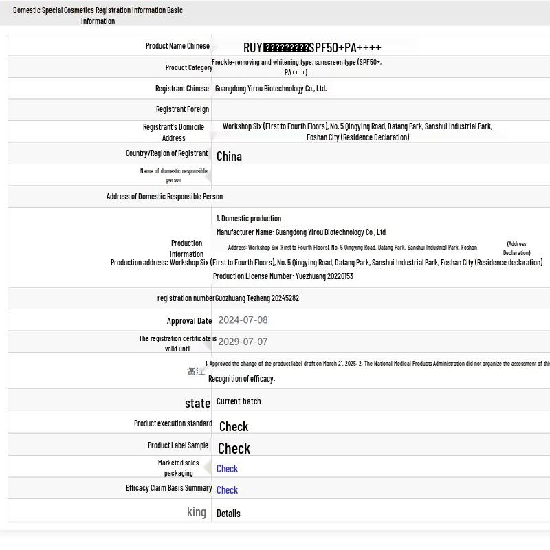 RUYI Солнцезащитный крем SPF50+ PA++++ с мультиэффектом