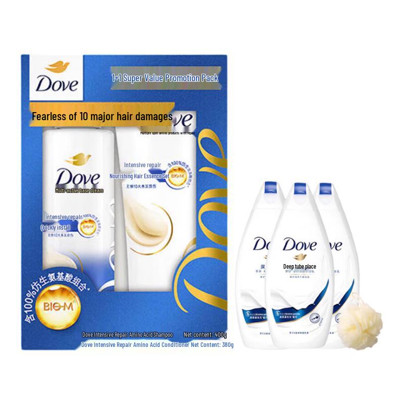 This Dove Intensive Nourishing Hair & Body Care Set offers a comprehensive routine for gentle cleansing and skin softening. Featuring large bottles (400G+380G) for daily care, this set also includes three 190g gentle cleansing body washes and a bath ball for a complete, luxurious shower experience. Suitable for various skin types, it cleanses, soothes, and leaves skin feeling soft and tender.