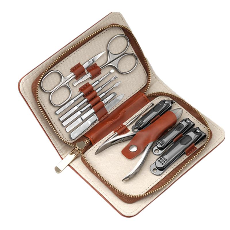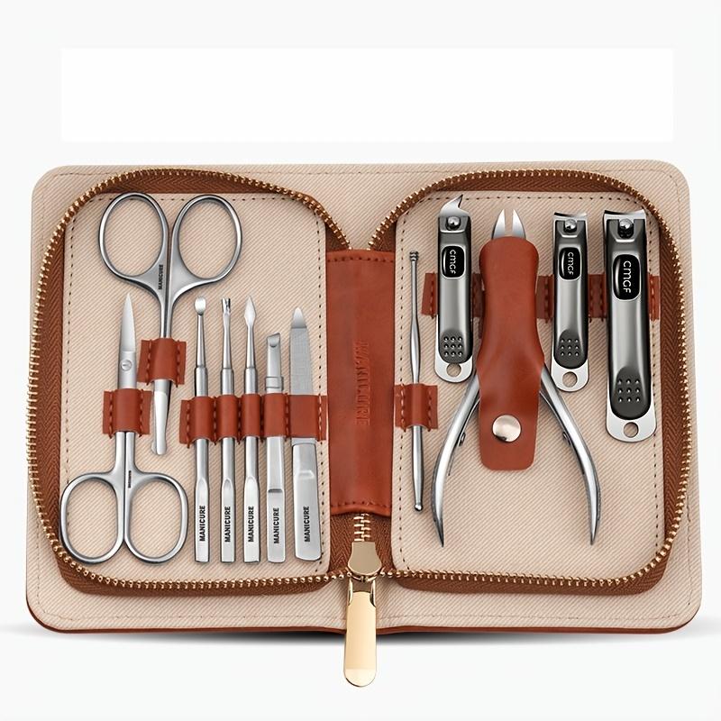 Набор из 12 премиальных кусачек для ногтей в кожаном чехле включает в себя маникюрный набор кусачек для ногтей — идеальный подарок для мужчин и женщин