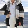 Женское модное зимнее свободное плюшевое пальто с длинным рукавом и карманом на молнии с капюшоном