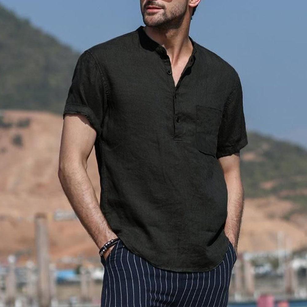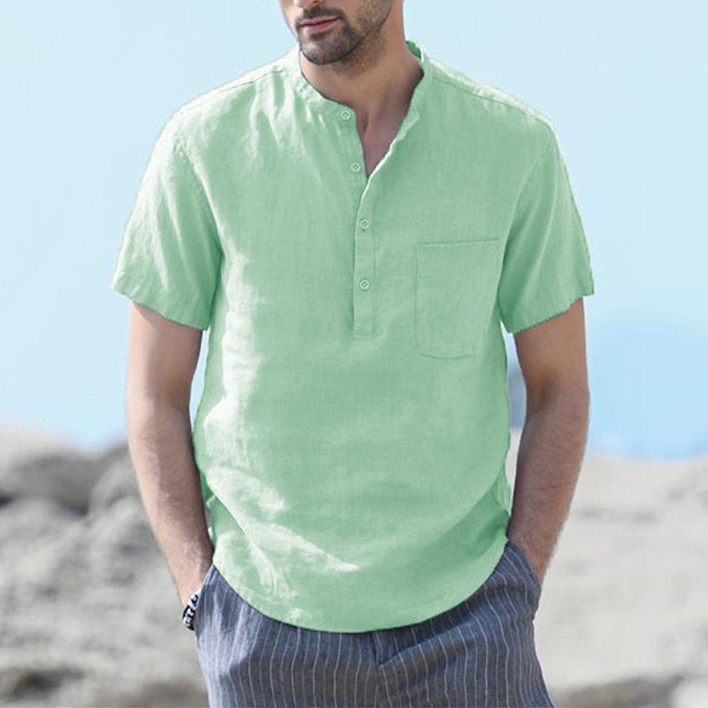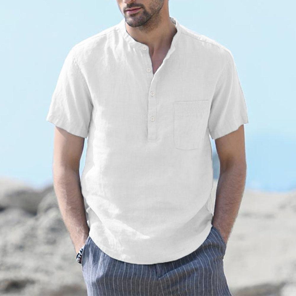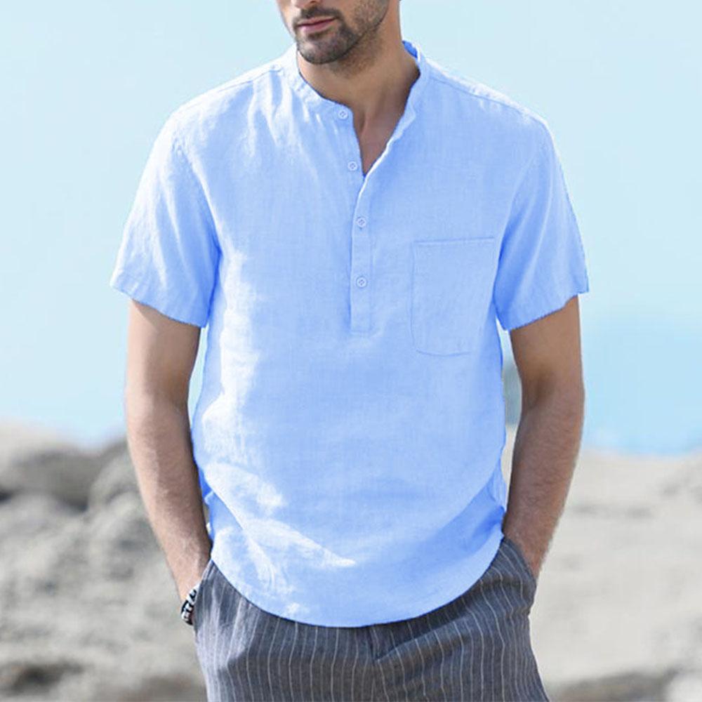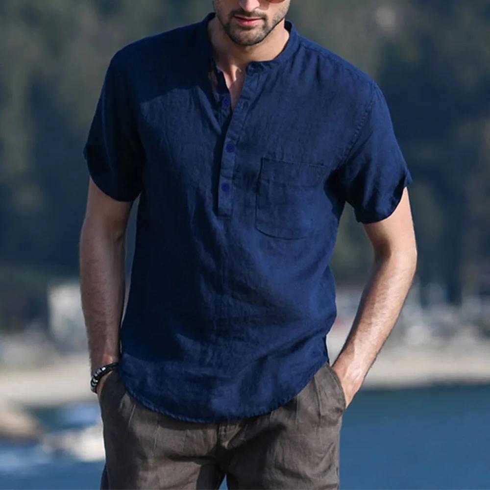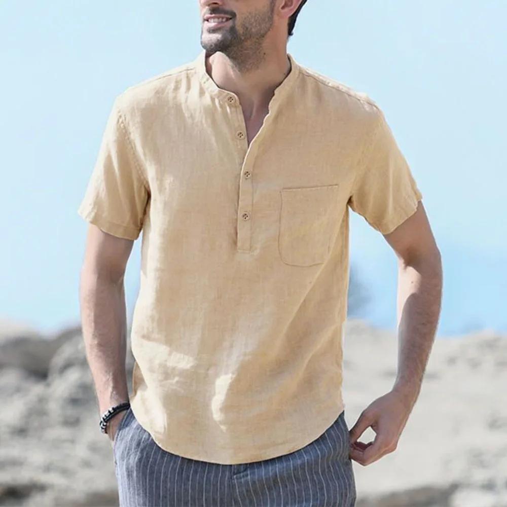 Мужская футболка из хлопка и льна с короткими рукавами, пляжная, повседневная, уличная, облегающая, легкая, дышащая, топы