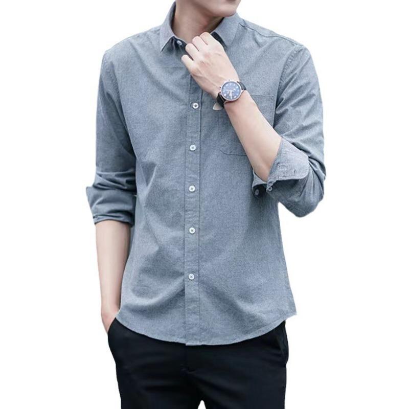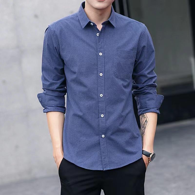 Мужская рубашка с длинным рукавом на весну и осень, облегающий крой